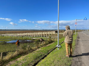 駅の前の草原には馬が何十頭もいた。Shiblyさんは動物が大好きだ。