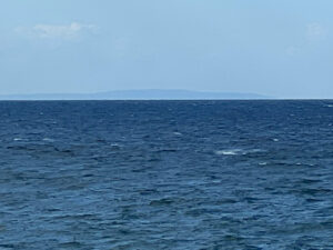 オシンコシンの滝あたりから海の彼方を見ると陸地というか島みたいなのが見える。