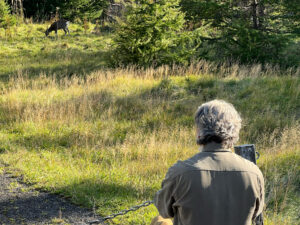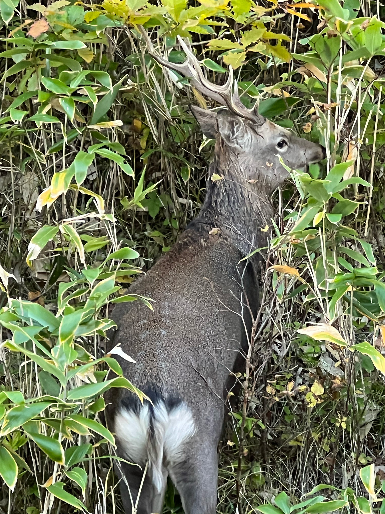 鹿だ。車を停め撮影をする。(この後も鹿はたくさん見ることができ、Shiblyさんはだんだんと見慣れていって、反応が薄くなった。)