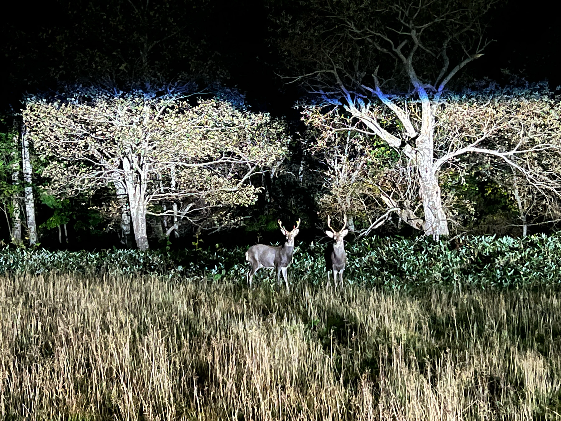 鹿がたくさんいる。走っている。鹿は夜行性なのだ。