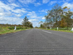 天に続く道は、28km続く直線の道路。いかにも北海道らしい。